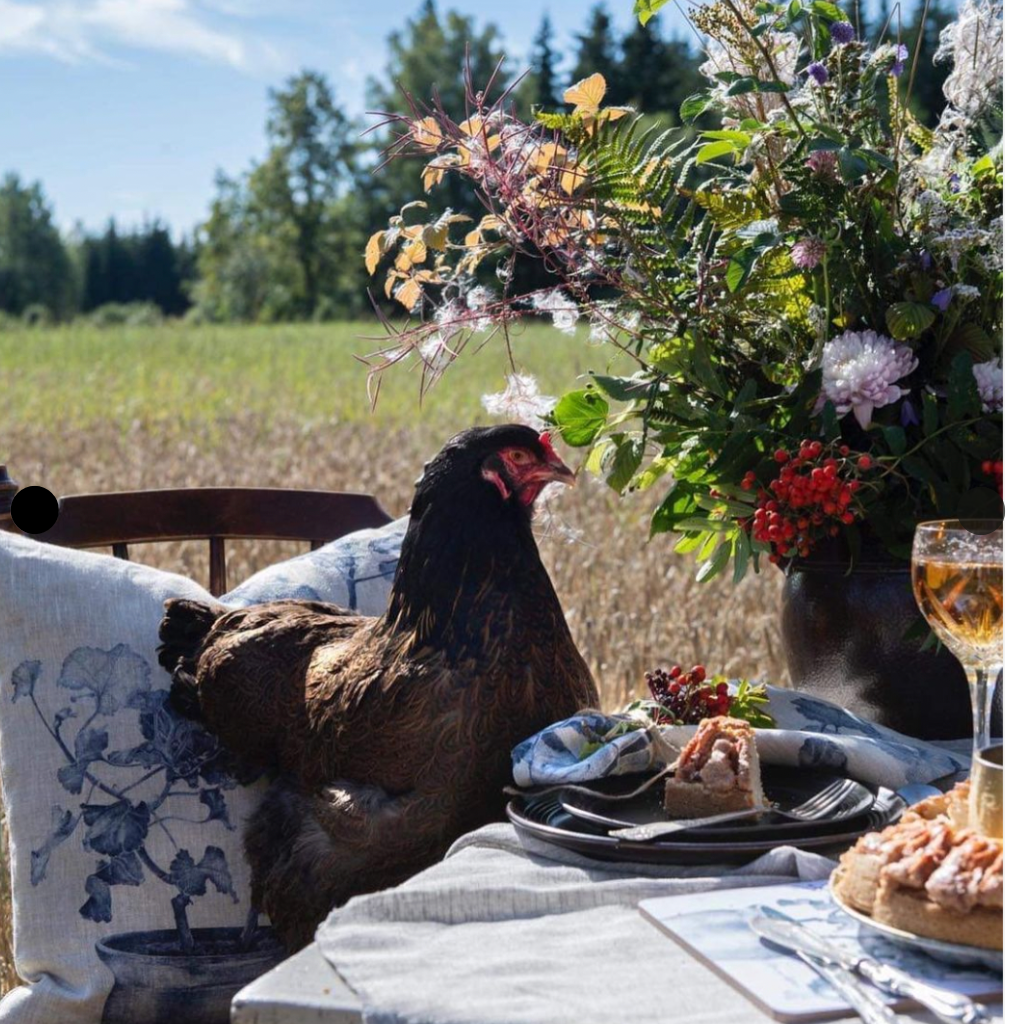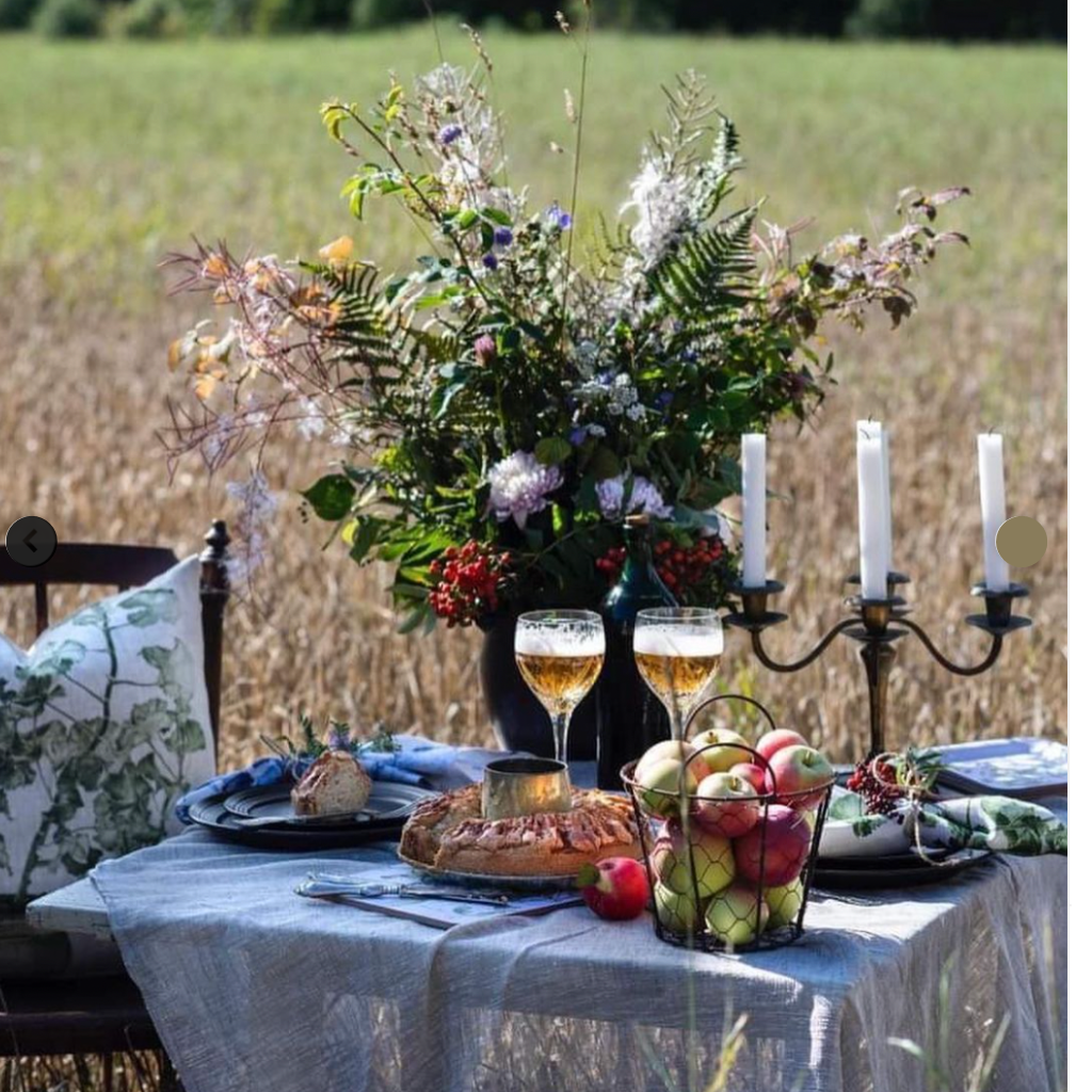 Things don't have to be so complicated. In the pictures here, I have, for example, set the table for dinner and coffee in the middle of our barley field. I had long had an inner image of how this table setting could look like and was just 'forced' to realize it last fall 😊