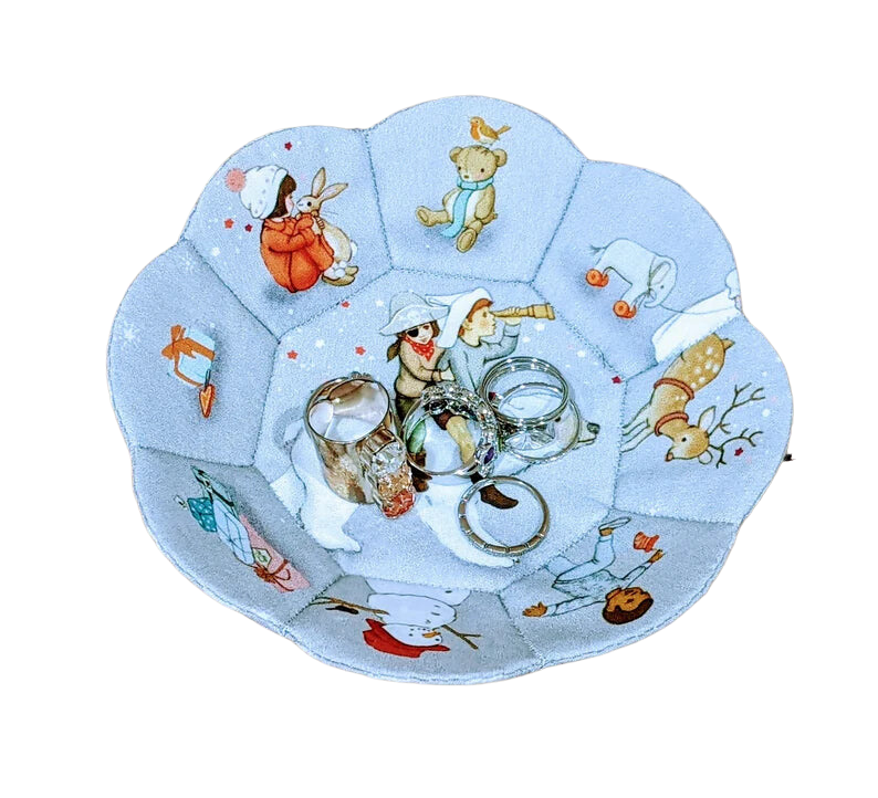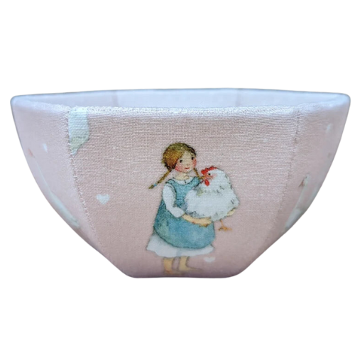 Jean- I also offer two fabric bowl patterns and a lantern pattern. This foray into epp, simple hand-stitching projects that could be completed without a sewing machine (while travelling or waiting in a doctor's office,...), began after a neck injury! The Pretty Little Fabric Bowl was my first fabric bowl pattern. I wanted to make something I could finish in a short amount of time and be able to use more of the gorgeous fabrics that I was seeing! (Honestly, how blessed are we with the variety of fabric to choose from - fabric seems like art in itself to me! ) My first bowl pattern is a flatter design and has scalloped edges. I wanted to have a low, stackable container to hold my teddy dolls parts in progress (I literally stacked the bowls one on top of the other). I needed something to do with my hands ALWAYS, to heal, and to keep my sanity through challenging times. Both epp and dolly making can be picked up and put down and I found I could be creative for a little time each day, even when recovering, which cheered me up. The second pattern, The Goodness Bowl, was designed because customers requested another bowl pattern! It is a deeper bowl design and was born during covid when I wished for a little more "goodness" for everyone. I enjoyed paper piecing but soon transitioned in Pellon piecing and then lantern making when the dolls and my neighbours children wanted to make little lanterns!"