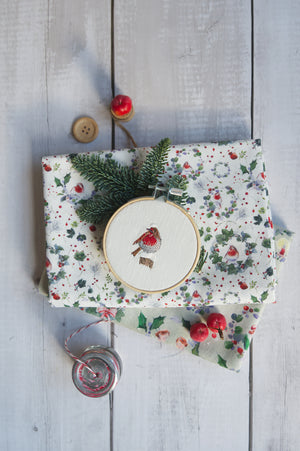 These small winter scenes unfold their special charm in embroidery hoops, on gift tags, or as subtle accents on lovingly sewn accessories. Combined with Sophia Drescher's "Winter Walk" and "Robin & Wreaths" fabrics, they create small textile works of art full of warmth, naturalness, and charm.