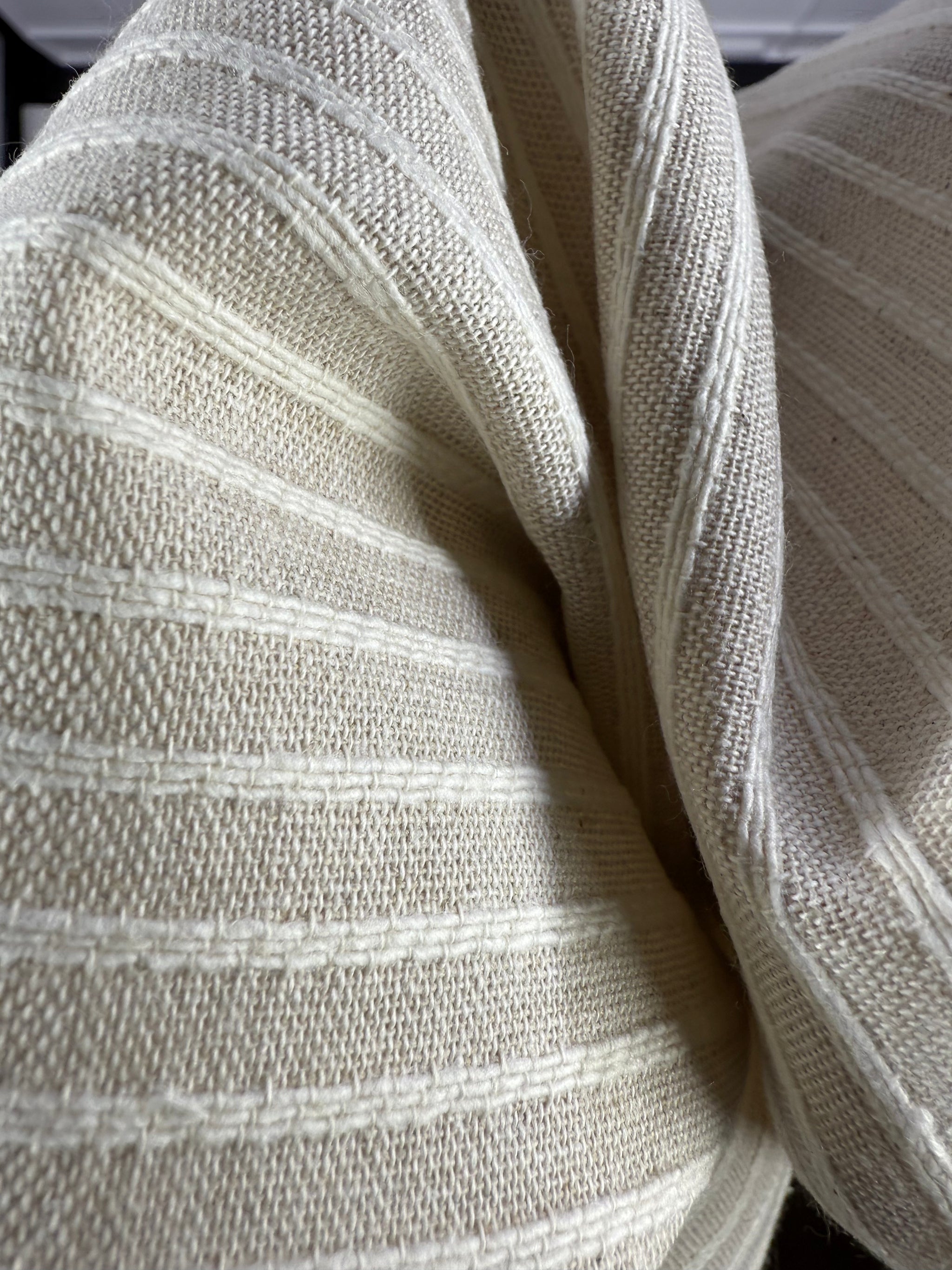 "A family of antique textures in natural tones and vintage colors. Fabrics made with dyed yarns in various thicknesses and colors, combined in stripes and timeless classic designs. Available in packs and also individually cut."