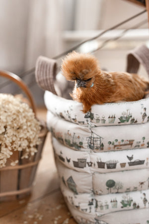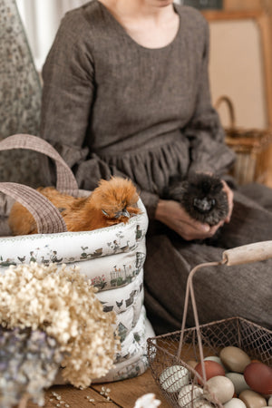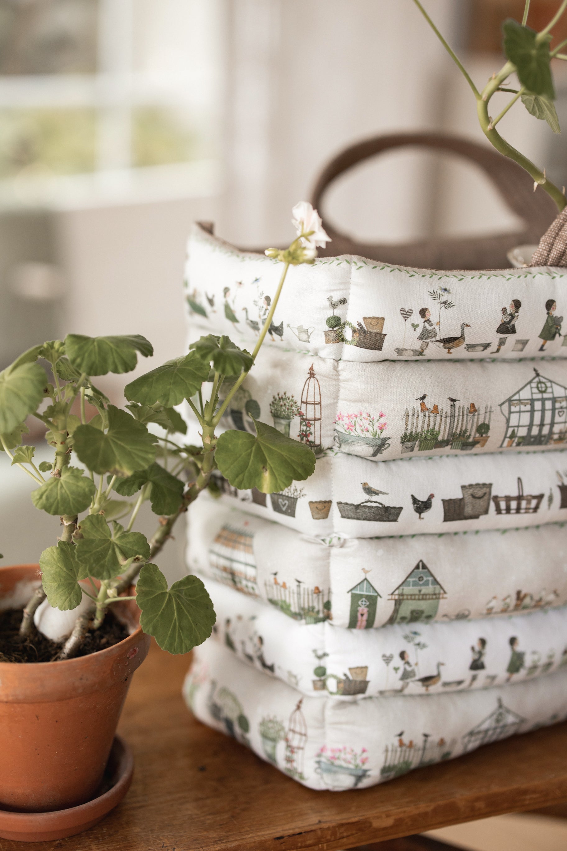 follow the fabric design. It is a pleasure to look at and offers space for everyday essentials. With its garden and nature motifs, it brings a touch of country charm."