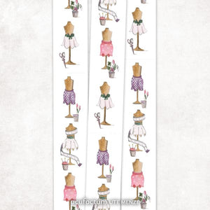 The weaving ribbonSchneiderliebe (Tailor Love)brings the fine world of tailoring into a lovingly designed motif band. Silke Leffler has illustrated small mannequins, needle cushions, tape measures and delicate flowers in her unmistakable handwriting. Each figure tells of creativity, craftsmanship and the little moments that make sewing so special.