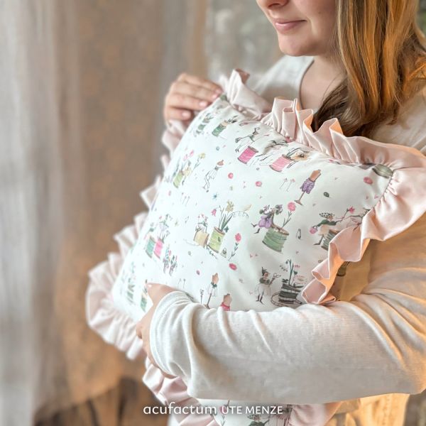 In loving illustrations by Silke Leffler, a fabric is created that captures spring with delicate colors, creative joy and a trace of poetic lightness. Ideal for pillows, bags, aprons, patchwork, children's room projects and all the little things that make a home even more cordial.