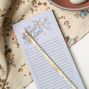 Stay organized with the Blossom List Notepad, your daily companion for tasks both big and small. With hand-drawn blossoms and a gentle nudge to ‘just start,’ this tear-off pad brings productivity and thoughtful intentionality to your to-do list. Whether you're planning a grocery run, tracking your goals, or jotting down tasks, each page is ready to support your day. Slim and lovely, it fits perfectly on your desk, bedside, or kitchen counter.