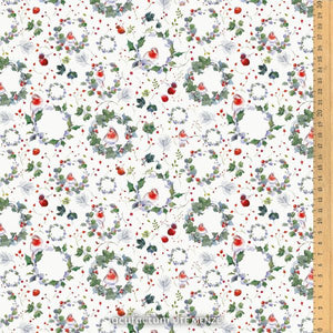 "Robins & Wreaths" is perfect for winter patchwork projects, atmospheric pillows, Christmas table linens, or lovingly crafted sewing ideas that add a warm touch to the cold season.
