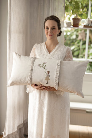 The kit includes the fabric, cross stitch linen, dmc floss and stabilizers needed to complete this adorable pillow. The pattern is in the Beloved Home book which you MUST have (the pattern is NOT included with this kit)