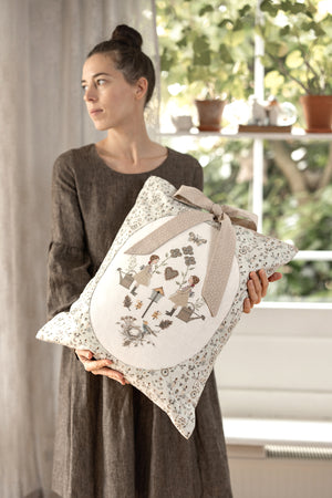 "This pillow is a true gem. Lovingly hand-embroidered, framed, and finished with a ribbon, it radiates a special charm and becomes an eye-catching accent in every room.