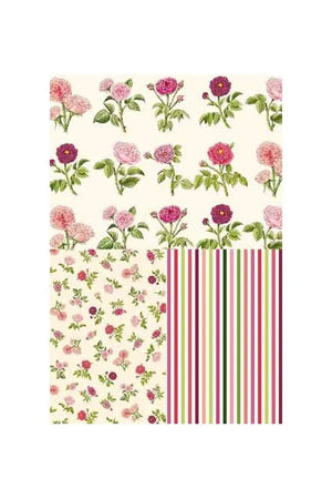 This fabric represents watercolour interpretations of the roses with their indicative names: Souvenir de Joséphine, Empress Josephine, Redouté’s Proliferation, Belle Hélène, Souvenir Malmaison…