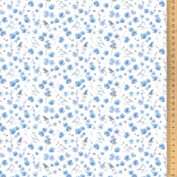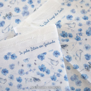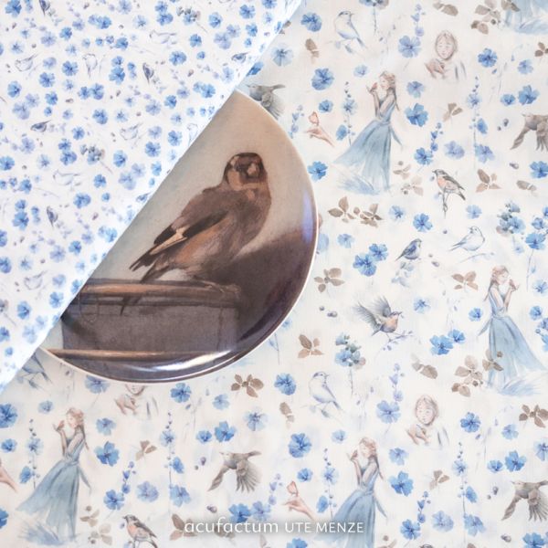 Blossoms and Birds – romantic lightness for your sewing projects. The cotton fabric Blossoms and Birds, designed by Sophia Drescher, adds a summery, romantic touch to any project. Delicate blue blossoms unfold against a light background, flying in perfect harmony with small, delicately drawn birds. The detailed design of this all-over fabric lends it a gentle elegance and makes it a particularly beautiful companion for various sewing projects. Blossoms and Birds is wonderfully suitable for romantic garments, cushions, or bags. This fabric also unfolds its full beauty as a combination fabric with My Little Friend, blending perfectly into the summer atmosphere. The delicate flowers and birds complement each other harmoniously and lend your creations a natural lightness. Be inspired by Blossoms and Birds and bring a touch of summer freshness to your sewing projects. A fabric that is not only ideal for romantic designs, but also impresses with its versatility.