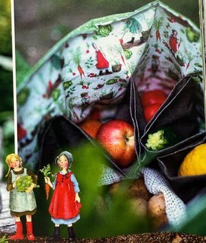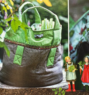 *This kit includes all the fabric, interfacing, label and ribbon required to make this wonderful large tote. The inside has general pockets to hold all your market goods, and the tote is adorned by the sweet garden themed ribbon and label.