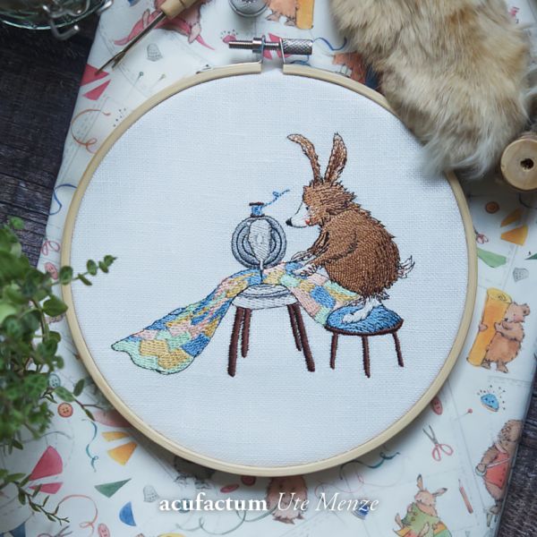 Acufactum MACHINE EMBROIDERY FILE - Bunny at the Sewing Machine