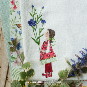 The delicate creatures from the pen of Kerstin Heß are fairytale-like and playful. They take us into enchanted worlds where fragrant blossoms spread their beguiling scent on a grand scale. A wonderful fabric to combine them with is the cotton fabric Flower Garden Art. no. 3523-917.