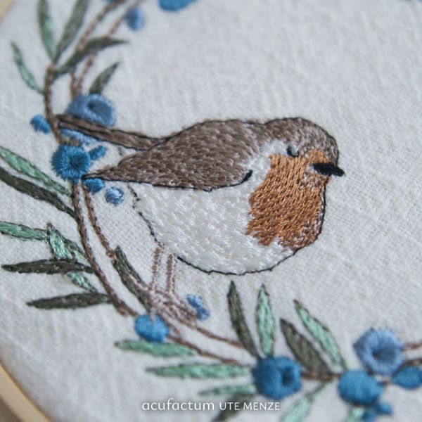 Acufactum MACHINE EMBROIDERY FILE - Robin in a Wreath