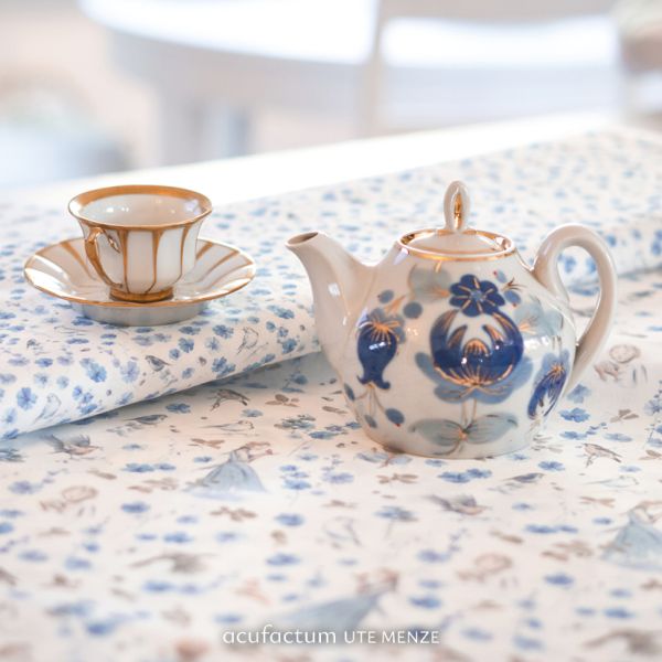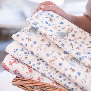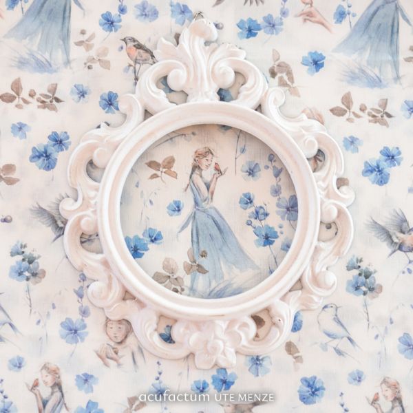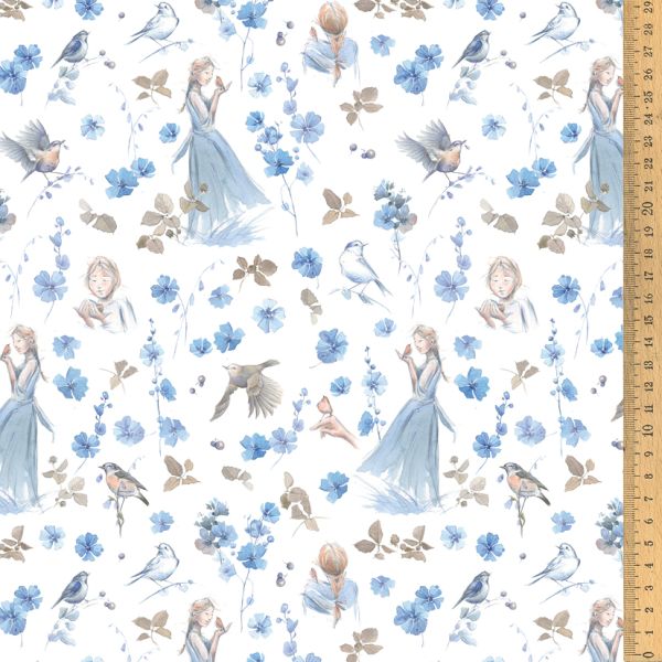 My Little Friend – A fabric full of summer joy and friendship. The enchanting cotton fabric My Little Friend transports us to a summer world full of lightness and friendship. In a blooming meadow, surrounded by flying birds, a young woman spins in the breeze and calls a bird her friend. The scenes in which the bird gently perches on her shoulder or hand convey a feeling of affection and connection, as if the two were engrossed in an intimate conversation. The fabric exudes a wonderful elegance and cheerfulness, playfully addressing the theme of friendship. My Little Friend is not only a beautiful fabric for home accessories such as pillows or table runners, but is also ideal for bags, book covers, or personal projects that require a cheerful yet elegant touch. This fabric is the perfect companion for anyone who wants to bring the beauty of summer and the magical lightness of friendship to life in their sewing projects. Be inspired by the playfulness and charm of My Little Friend and create unique pieces that warm your heart.