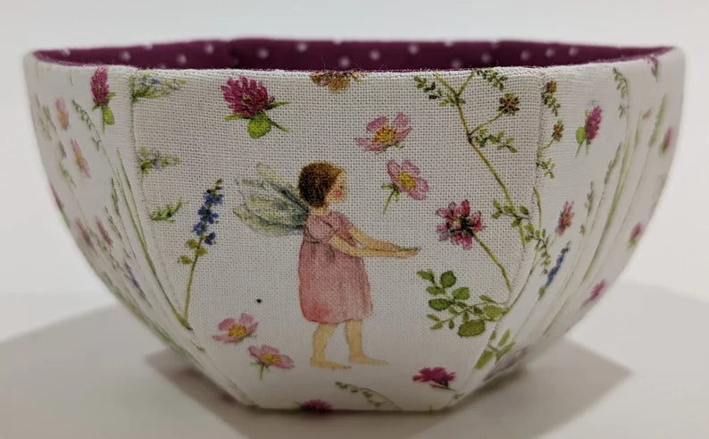 Included in the class is the printed pattern, and a package of pre-cut peltex shapes which allows you to make one bowl. You will need to provide your own fabric from your stash or purchase fabric during class. The fun of these projects is that you can choose so many different fabrics to go with your decor, or to suit a special gift. The fabric is not included in the price to allow you the flexibility of customizing your bowl.