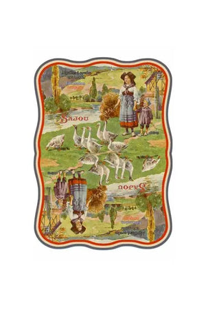 The cover represents an Alsatian woman and a little boy. The interior is a striped print in red, white and blue.